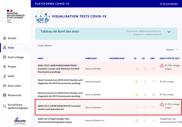 近日,尊龙中国官方网站新冠病毒L452R/E484K/K417N突变核酸检测试剂盒顺利通过法国卫生部备案许可。这也是尊龙中国官方网站第五个获得法国卫生部备案许可的新冠检测产品。