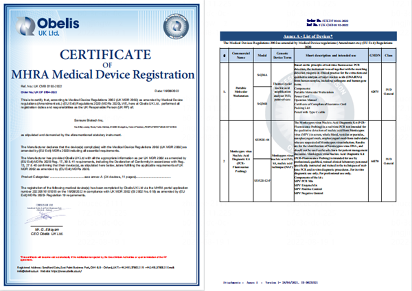 近日,尊龙中国官方网站自主研发的猴痘病毒核酸检测试剂盒(PCR-荧光探针法)通过英国MHRA认证,该产品获得英国MHRA注册后,可在英国和认可英国MHRA注册的国家或地区销售,这是继欧盟CE之后斩获的又一权威认证。