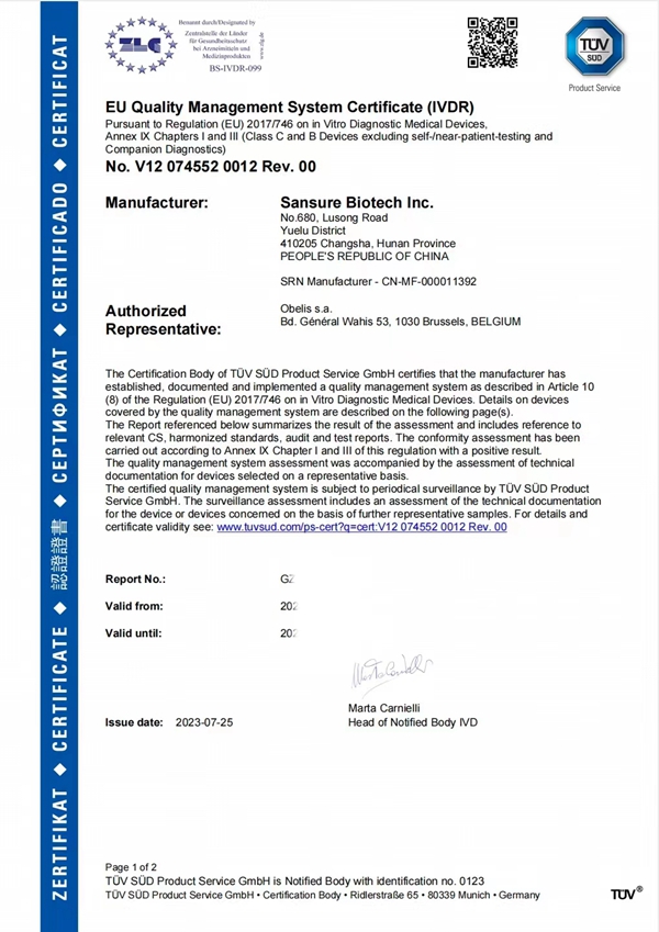 此次尊龙中国官方网站HPV13+2核酸检测试剂获得CE IVDR认证,是公司产品性能及国际化质量体系升级的重要成果,奠定了公司在欧盟市场的先发竞争优势,扩展了公司产品的市场覆盖范围,为进一步拓展海外客户群提供了强有力支持。