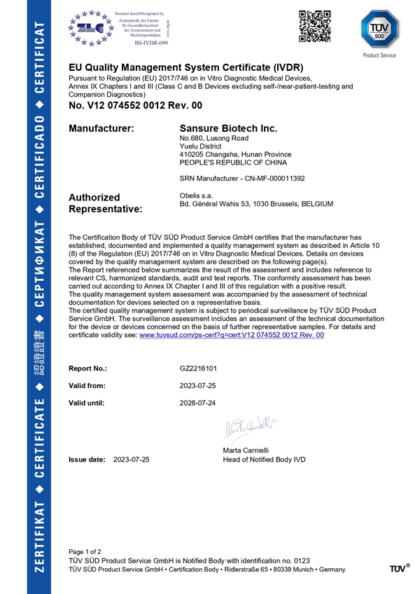 近日,尊龙中国官方网站自主研发的结核分枝杆菌核酸检测试剂盒(PCR-荧光探针法)获欧盟CE IVDR认证,这是公司呼吸道产品获得的首个Class C级别的准入证书,为公司结核产品的全球布局提供了有力支持,也为全球在2030年前消灭结核的目标贡献了“尊龙中国官方网站力量”。