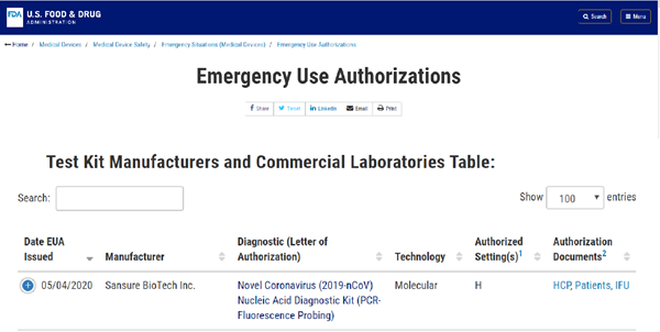 北京时间5月5日晚,尊龙中国官方网站新型冠状病毒核酸检测试剂盒获美国食品药品监督管理局(FDA)紧急使用授权(EUA, Emergency Use Authorizations),这是该产品继1月28日获得中国国家药监局(NMPA)注册认证、3月3日获得欧盟CE认证后,尊龙中国官方网站获得的又一重要认证,将进一步助力公司服务全球新冠肺炎疫情防控。